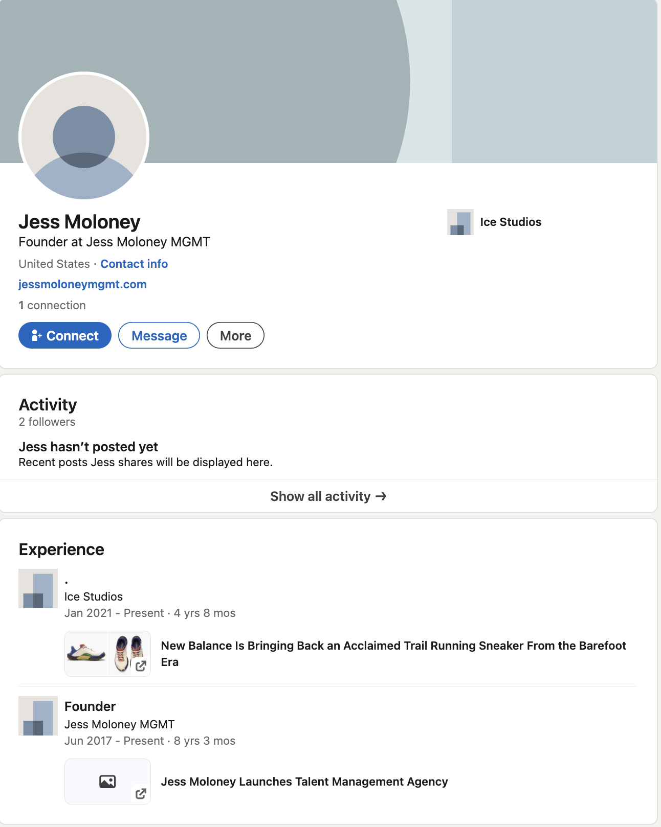 (Screenshot of Jess Moloney's LinkedIn page)