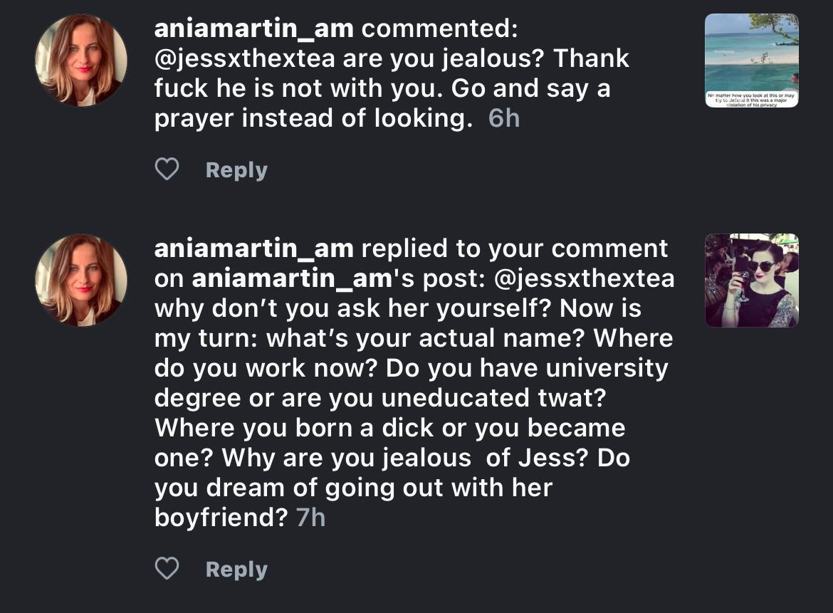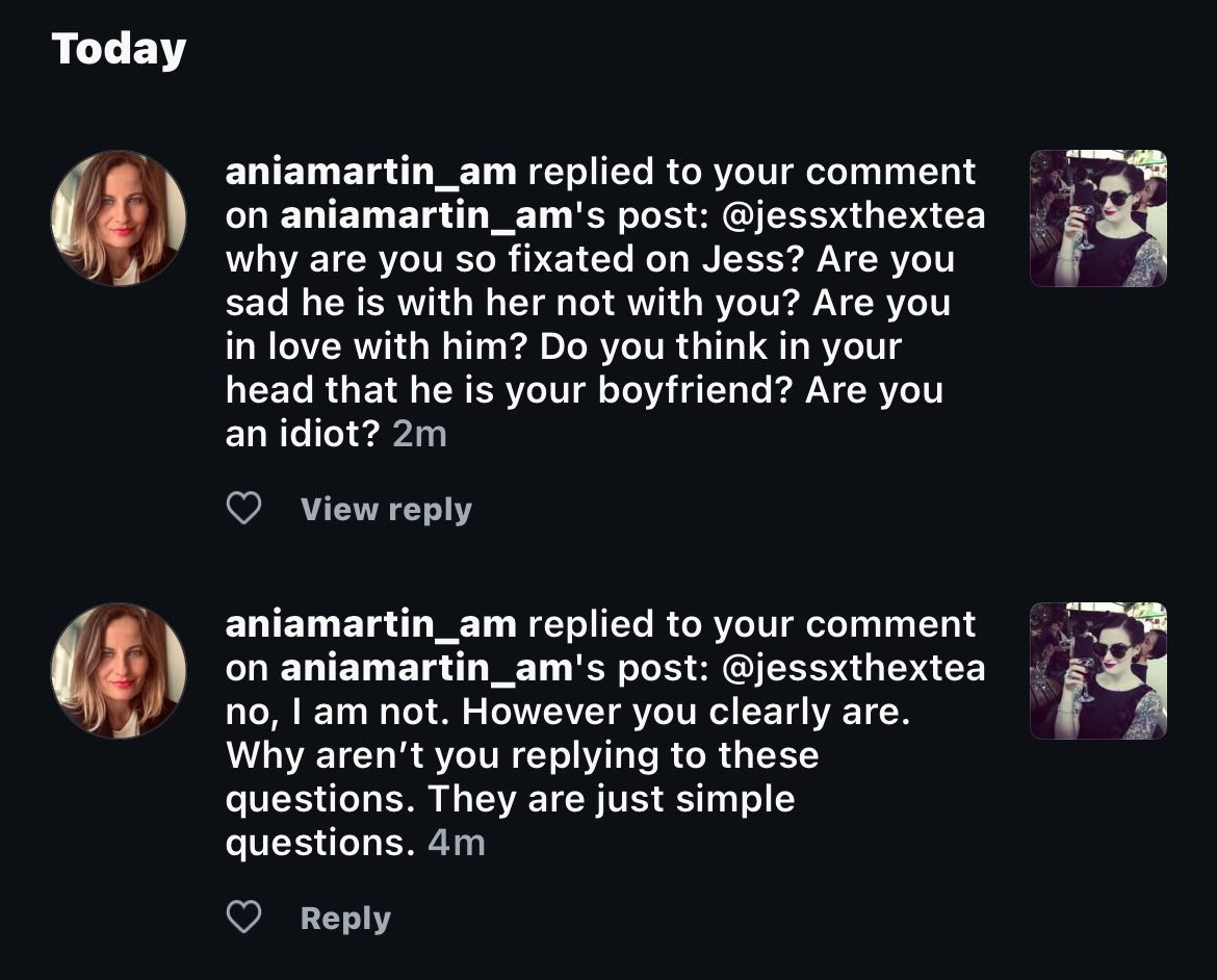 (Screenshot of Ania Martin's meltdown on IG when all I asked her was what Jess's Job was)